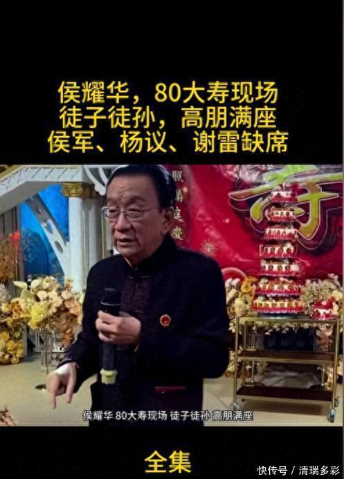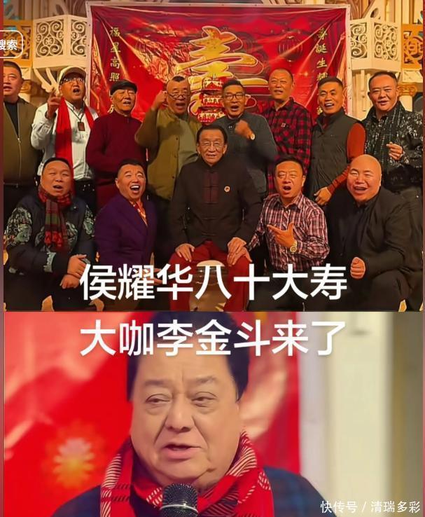侯耀华80岁寿宴热闹是真,可背后的弯弯绕也不少。现场来了李金斗、陈寒柏一众相声圈熟脸,老爷子一身黄褂红裤配红皮鞋,看着挺精神,合影也拍了不少。但细看布置——背景就一块塑料广告布,上头孤零零一个“寿”字,连名字都没印,明显是临时找地方办的。